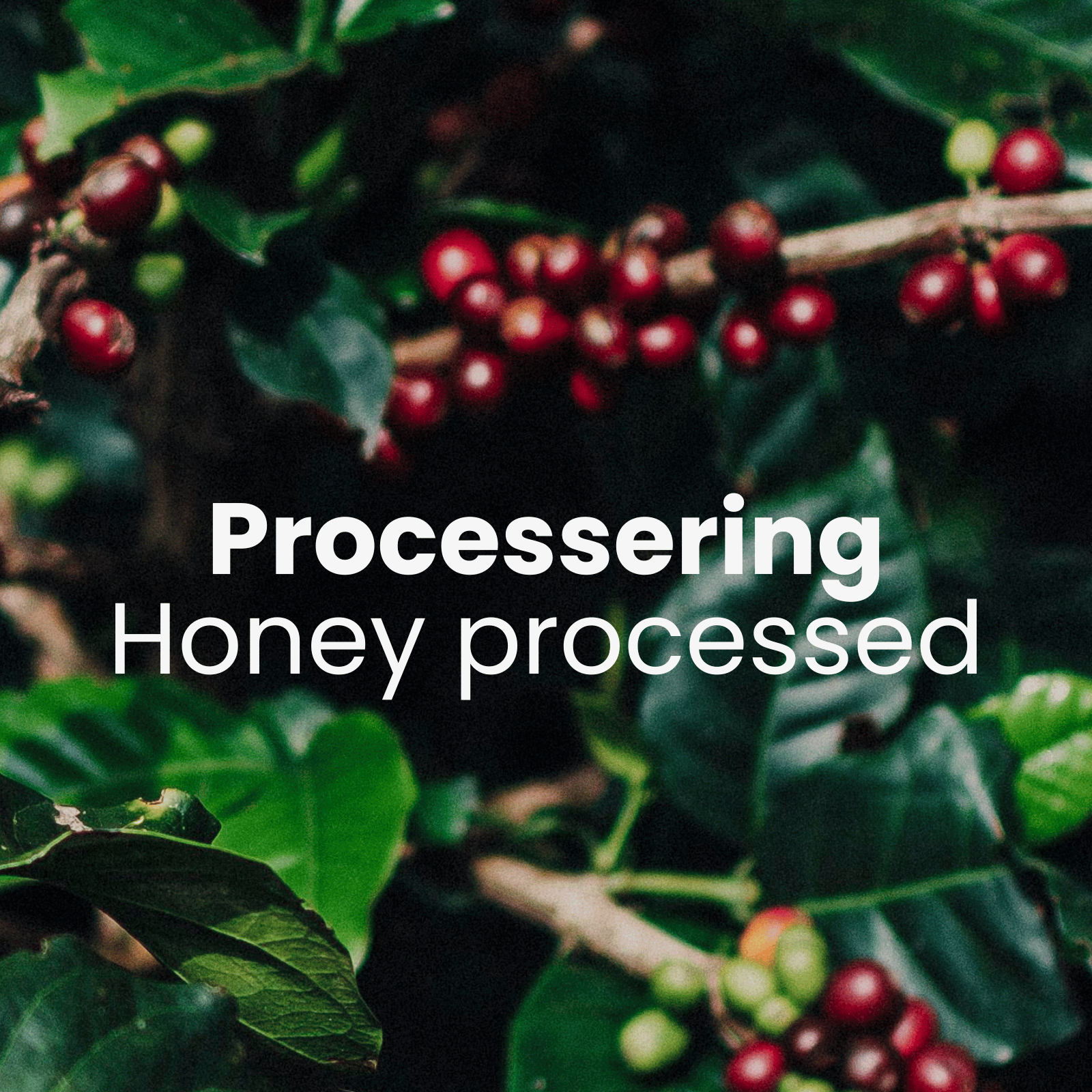 I modsætning til vasket kaffe, så fjerner man ved honey processed kaffe skindet på bærret, men lader frugtkødet sidde.