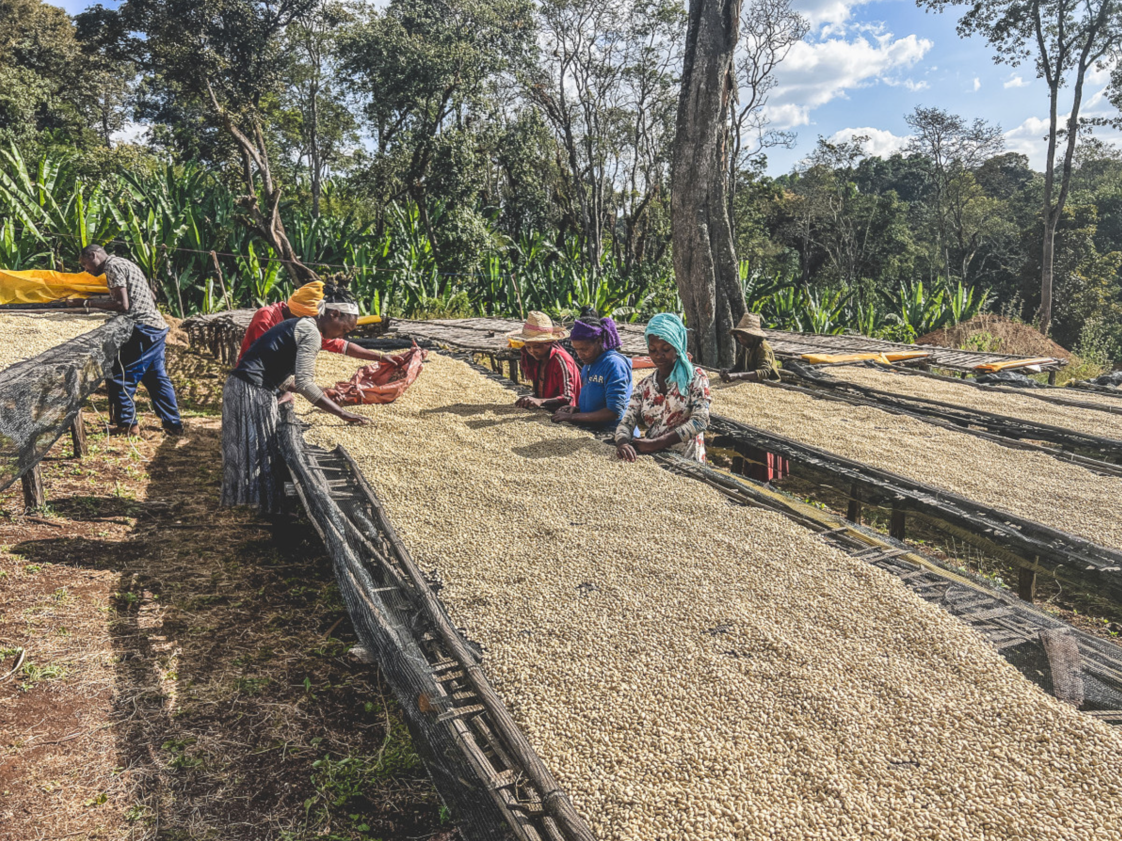 Efter høsten skal kaffebærrene gennem en omhyggelig washed-processering, hvor bønnerne gennemgår en fermentering i 12 timer. Herefter bliver de lagt til tørring på traditionelle, hævede “African beds” under den etiopiske sol i 14 til 18 dage. Denne længere tørreproces hjælper med at bevare kaffens rene smag og naturlige sødme og sikrer, at smagsnoterne holder sig klare over tid.
