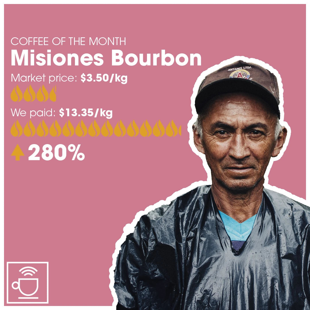 Vi anbefaler at brygge Misiones Bourbon efter vores opskrift for optimal sødme, balance og kompleksitet. Vi anbefaler, at du bruger en forlænget 'bloom' og ikke kværner for fint, men du er velkommen til at eksperimentere med variablerne.