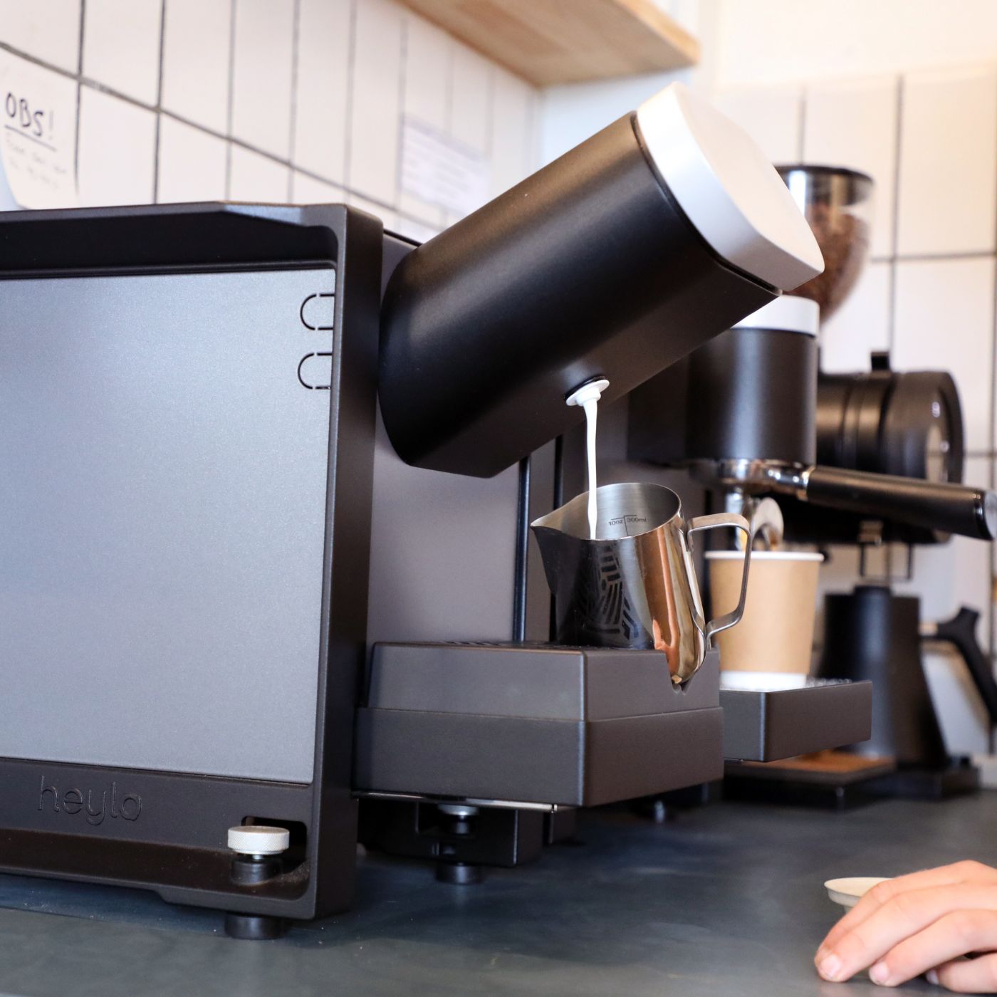 Heylo har udviklet et semiautomatisk hybridsetup bestående af en espresso- og mælkeenhed.