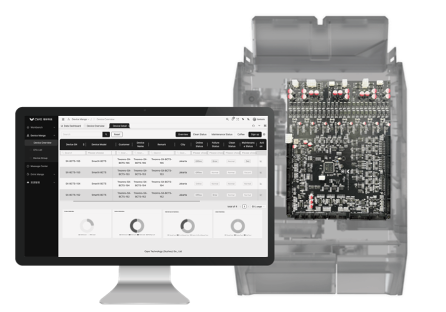 Effektiviteten på kontoret bliver typisk ikke højere, hvis kontorets kaffemaskine stopper med at virke. Caye-maskinerne er dog anderledes end de fleste andre. Maskinens indre system er opbygget i moduler med et fejlfindingssystem, der kan teste hvert modul, hvis der opstår fejl.